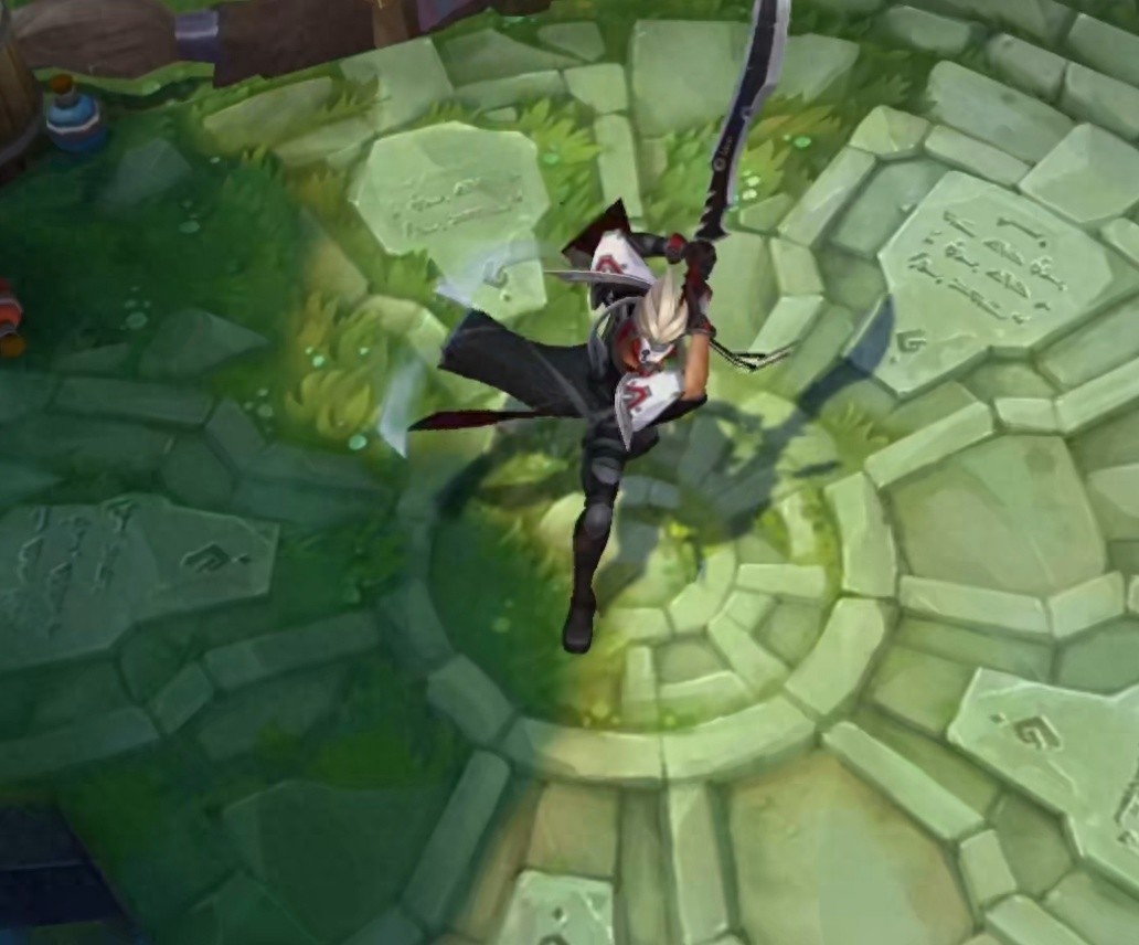 剑圣的w技能,从动图中我们可以看到剑圣在释放w期间自身会有蓝色光圈呈现,而剑圣自身颜色也成白蓝色的透明状态,而剑圣的衣物也会跟随着w技能释放漂浮起来。这个特效在我眼里真的就普普通通说不上特别出彩的地方,也说不出什么缺点,因为就值这个价。(79)