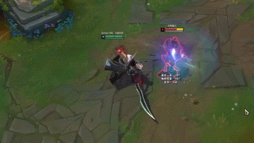 剑圣的E技能技能特效展示,剑圣在开启E技能时,刀剑颜色会换成黑紫色,单论特效而言,我个人觉得这样的特效会使的剑圣的刀科技感十足,也比较符合主体身份, 不过也很像以前老电视机的花屏一样。