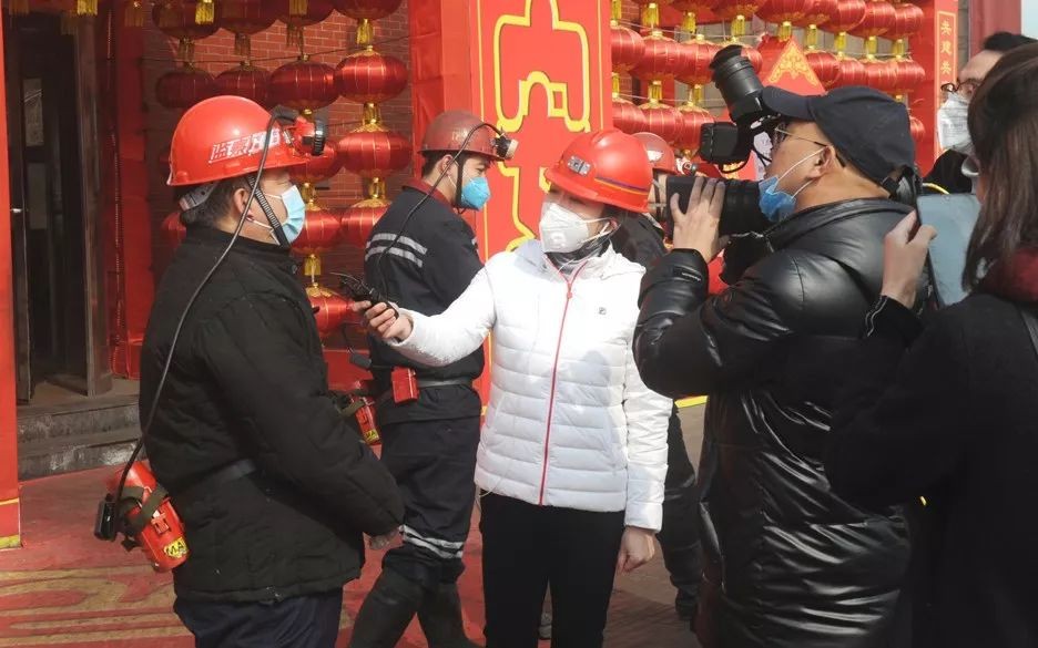 记者:谢谢焦矿长。大家可以看到刚才进行的体温测量的矿工们现在已经集结成队,马上他们要进行一个入井前的安全宣誓。