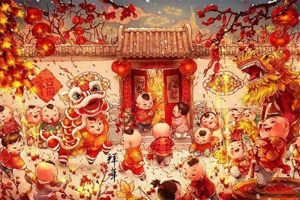 从此,每年初夕,家家贴对联、燃放爆竹,户户烛火通明,守更待岁。初一大早,还要走亲串友,道喜问好。这风俗越传越广,成了中国民间惹人喜爱的传统节日过年。