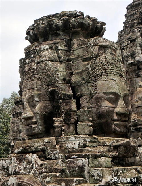实地看到,这是高棉帝国宫殿城,是吴哥的“心脏”。在吴哥城的中心,阎那跋摩七世建造贝雍寺。贝雍寺有54座大小宝塔,每座塔的顶部都雕有象征国王的巨大的四面佛,他们从塔尖微笑着俯瞰四周,象征着王权至上和佛教神圣。这是最具有高棉特色的石雕造型。不管你站在哪个位置,都能看到高高在上的佛像,感受到他们潜在的威慑力,令人不由得肃然起敬。