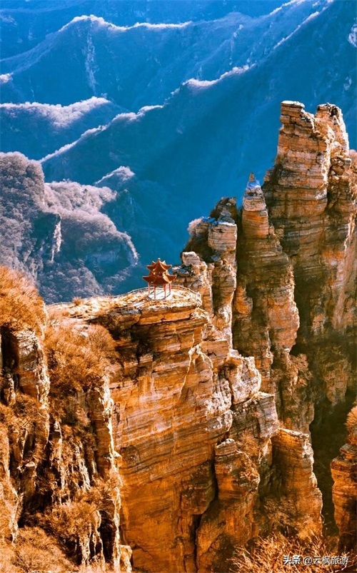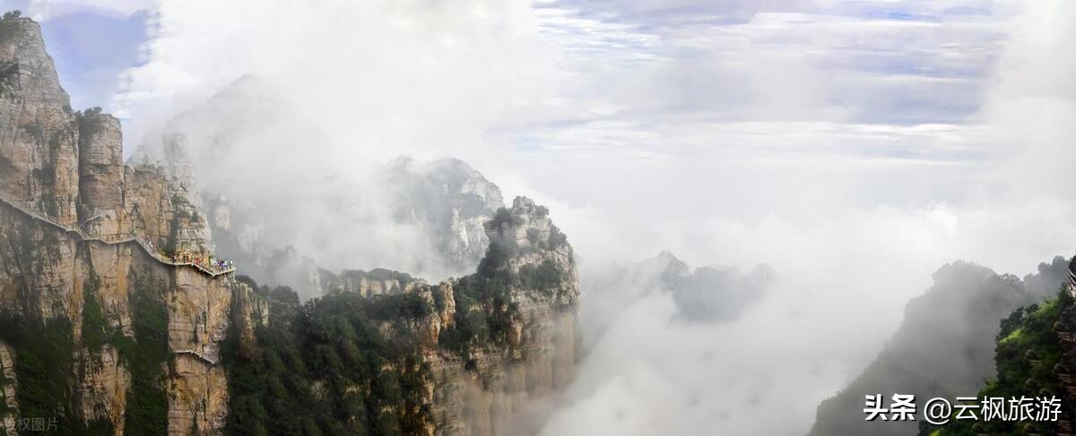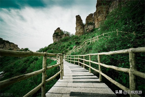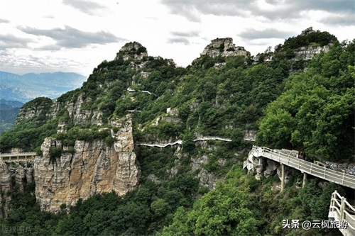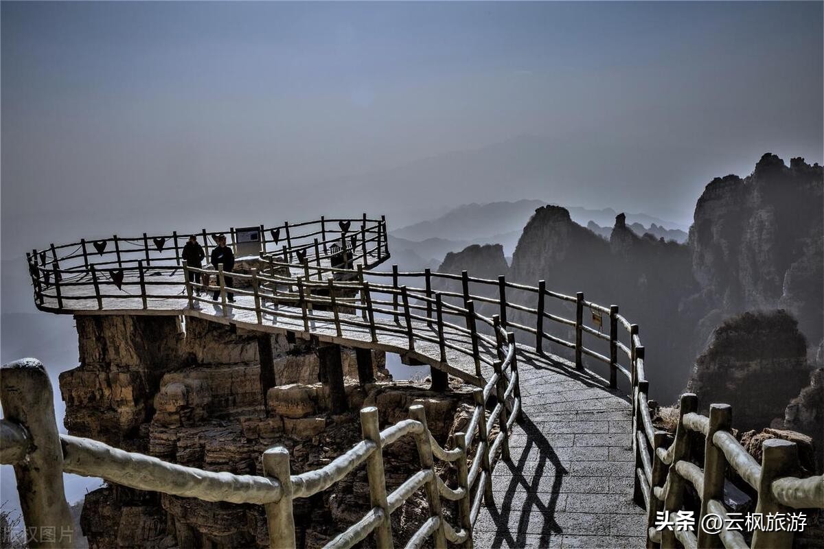 ①玻璃栈道:全长95米,宽2米,海拔1900米,是我国北方最长的玻璃栈道。走在玻璃栈道上,脚下是深渊,四周是美景,刺激与美景并存。