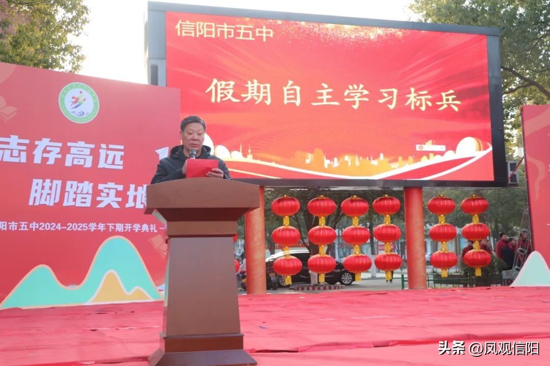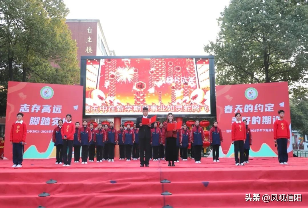 2月18日上午,信阳市第五中学全体师生欢聚绿茵场,共同迎来了以“春意盎然学海扬帆”为主题的开学典礼。这场春日盛会不仅充满了力量与希望,更为新学期注入了无限生机与活力。
