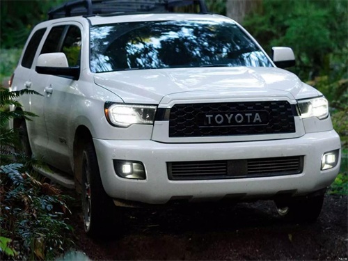 丰田红杉,是我知道的丰田汽车最大的SUV,长宽高分别为5210*2029*1895(mm)轴距为3099mm,该车搭载着5.7L自吸V型8缸发动机最大马力386匹,扭矩为544N.m,功率为584千瓦该车在国内比较少见。