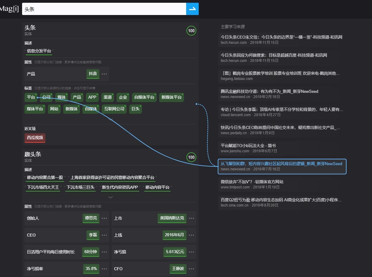 它能通过机器学习,将互联网上的海量信息构建成可解析、可检索、可溯源的结构化知识体系。