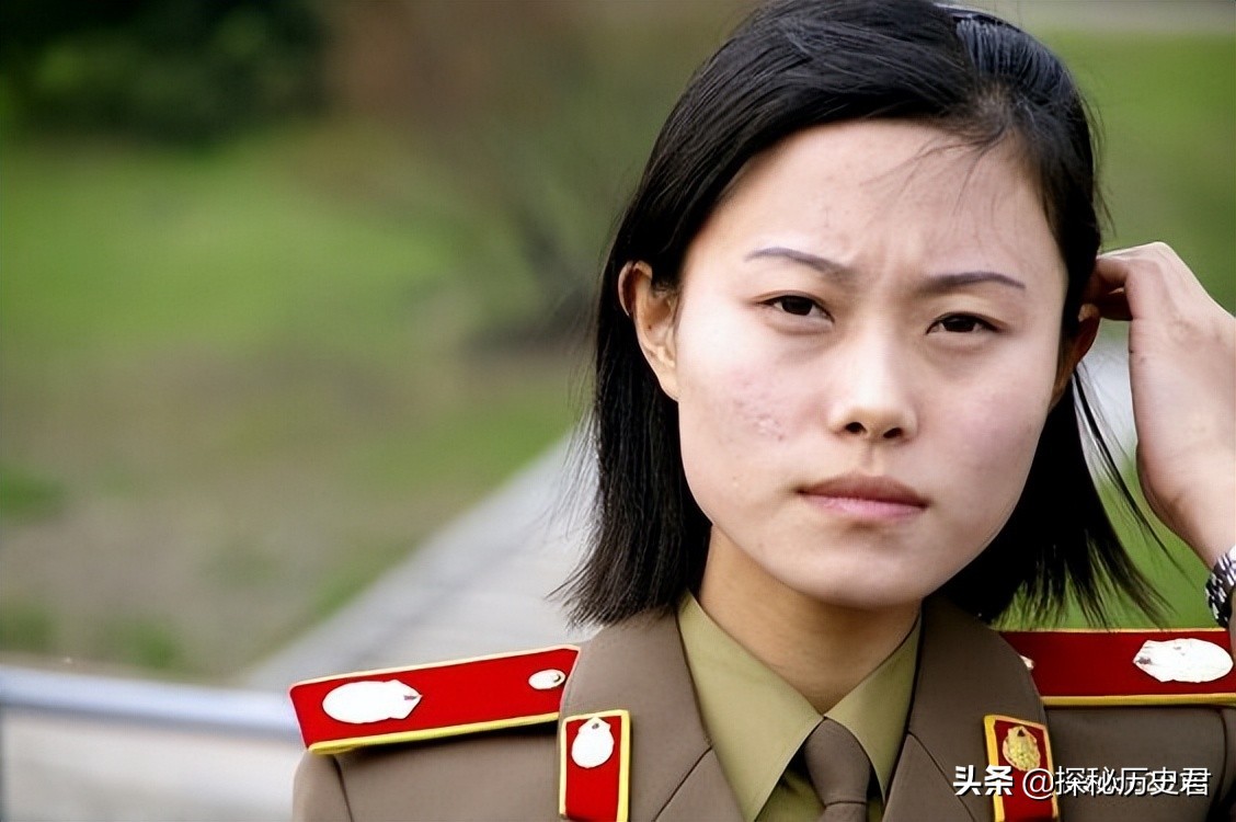 一个朝鲜的女军人,看得出来,她没有进行化妆,但如果进行简单的装扮,应该属于很漂亮的女人,但自然美也在当代的世界上,实属难得。