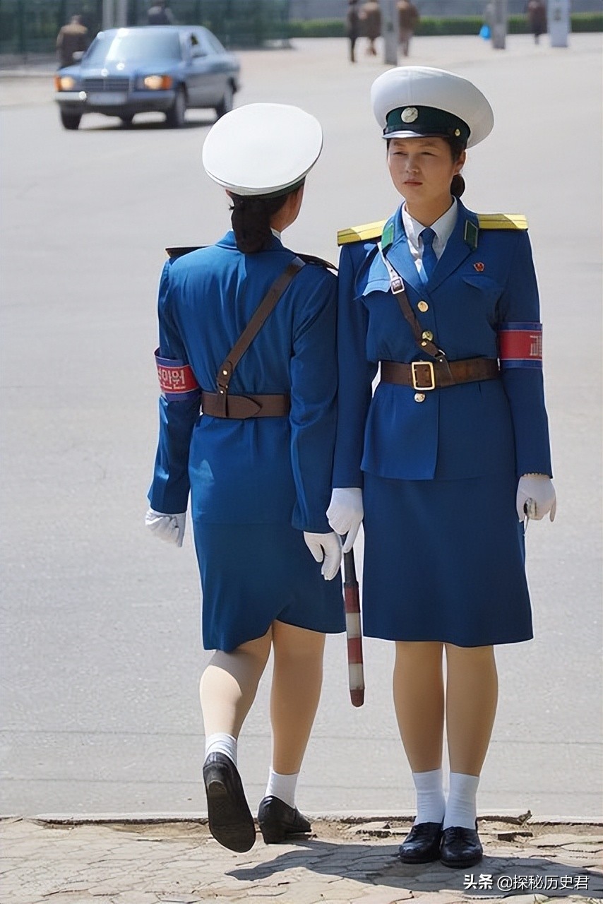 朝鲜的两个交通警察,在朝鲜交警属于很好的工作了,大都是年轻的美女担任,一般的人都以成为交警为荣,待遇也比一般的工作好。