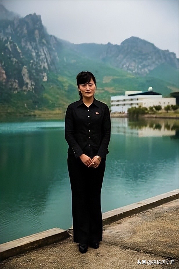 一个朝鲜妇女站在景区拍照,朝鲜人拍照,没有太多的动作,基本上都是正常的站立,但是女人身材很好,应该属于美女了吧。