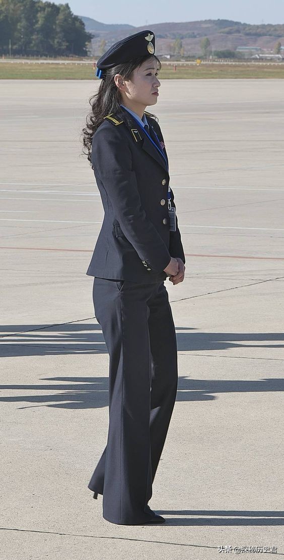 朝鲜平壤机场的一个地勤人员,一身制服,身材高挑,和我们机场的员工比起来,毫不逊色。