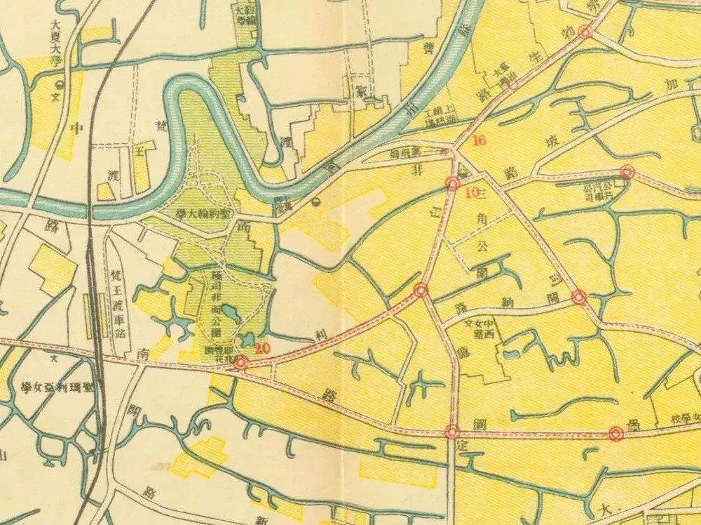 20世纪20年代初,连接曹家渡和老城厢的十六路及十九路无轨电车开通运营。紧接着,1922年开办了公利汽车公司,开辟华商首条公交线路,自静安寺—曹家渡—兆丰公园(今中山公园)—愚园路—静安寺的环形线路,曹家渡是其中重要站点之一。圣约翰大学师生以及休息天到兆丰公园休闲度假的市民是这条公交线路的主要乘客。