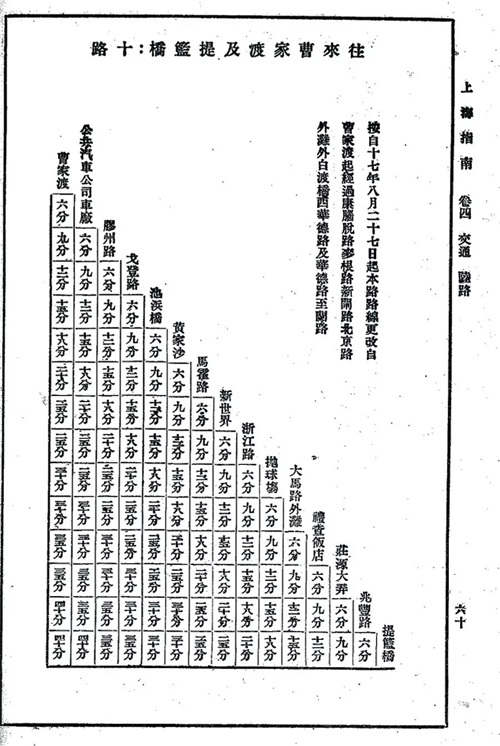 1930年版《上海指南》中的十路公共汽车里程价目表