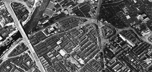 曹家渡地区1948年(上)、1979年(中)、2006年(下)航拍图对比