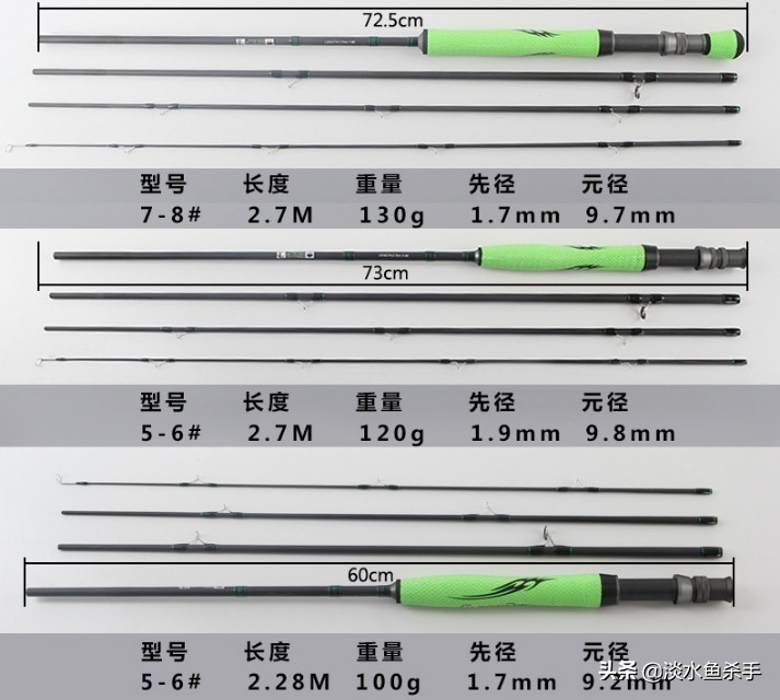 在这15级中,1#~4#的飞钓竿是用于溪流钓或者范围较小的钓点垂钓;5#~7#一般用于河流以及湖泊等面积稍微大一点的钓点垂钓;而8#以上则以钓获大体型鱼类或海钓用竿。