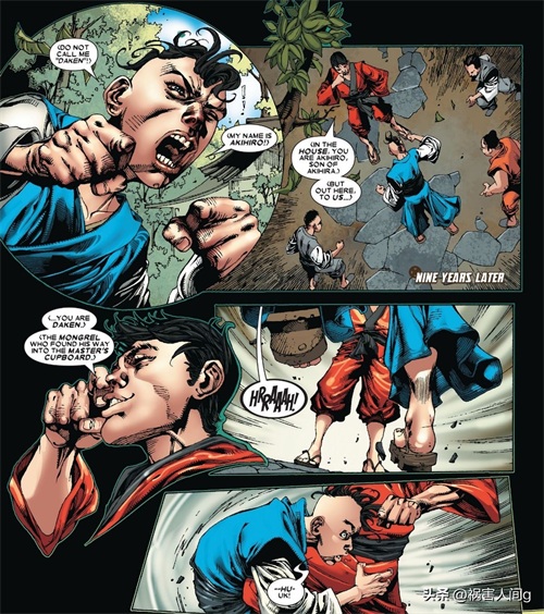 虽然秋平非常喜欢自己的养子,但是镇上的其他人都暗地里称彰弘为戴肯(Daken/駄犬),并且同龄人都欺负彰弘。