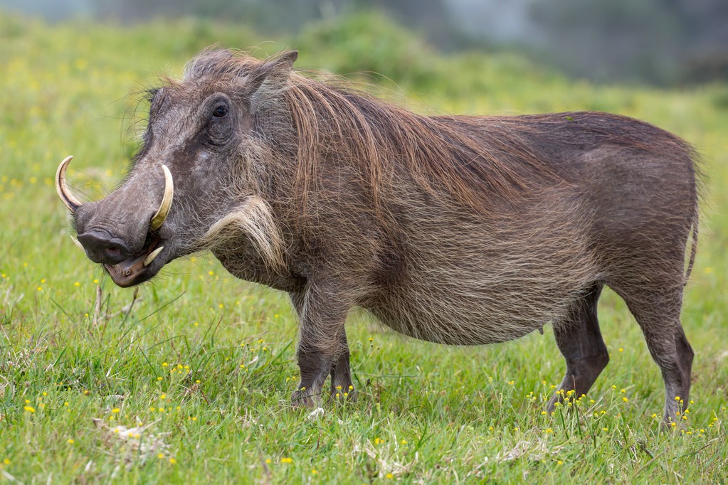 弱小的疣猪看似饱受食肉猛兽的欺凌,其实它们的獠牙是一件犀利的武器,经验不足的豹和猎豹等随时会被刺伤甚至刺死,但当面对狮子时便往往没有反抗余地。幸运是狮子只有当食物短缺时才会捕杀疣猪充饥。狮猎食大批疣猪,尤以雨季时为甚,因为这段时间的植物长得较高,使狮容易潜猎。在泥土被暴雨泡的松软的地方,狮往往把疣猪活活从地洞里挖出来。非洲许多狮子身上的伤疤就是小的时候冒犯与疣猪打斗的结果。