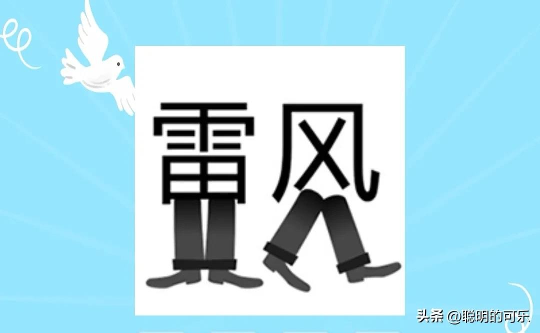 识图:双脚不动雷立正,迈开双腿风前行。一字谐音!