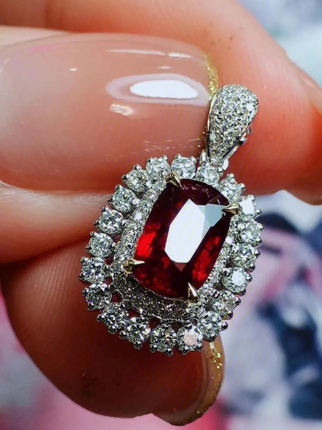 红宝石的红,来源于刚玉中铬元素的含量,一般来讲,含量越高,颜色越深。