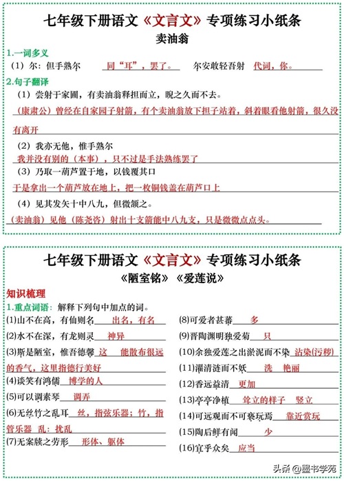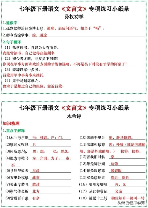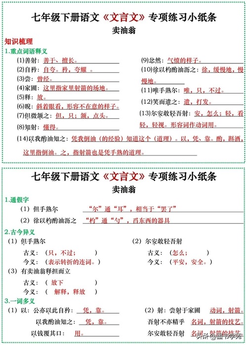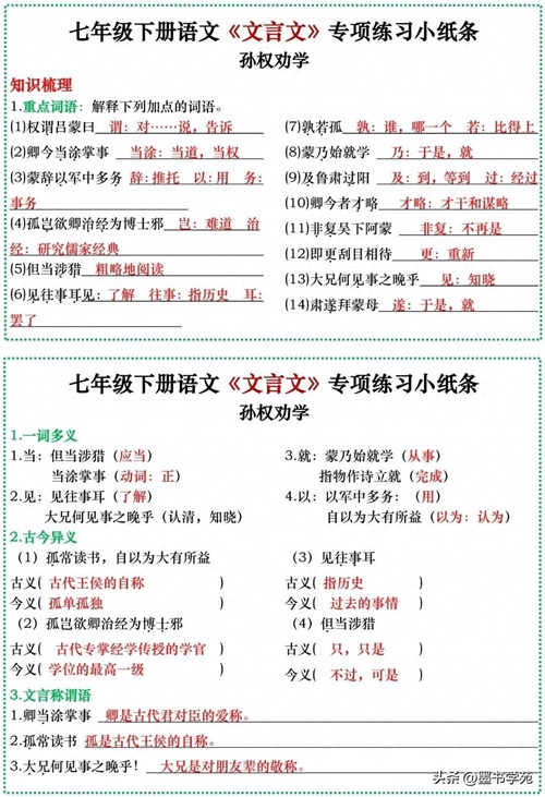 家里有娃上七年级的家长们,是不是一提到语文文言文,孩子就头疼,您也跟着发愁 别担心,今天就给大家送上一份超实用的七年级语文下册文言文重要考点梳理,孩子只要记住了,文言文拿分稳稳的