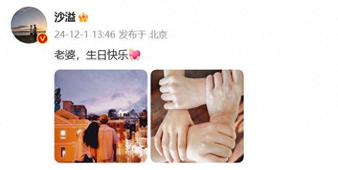 当天中午,沙溢晒照送上祝福:“老婆,生日快乐。”