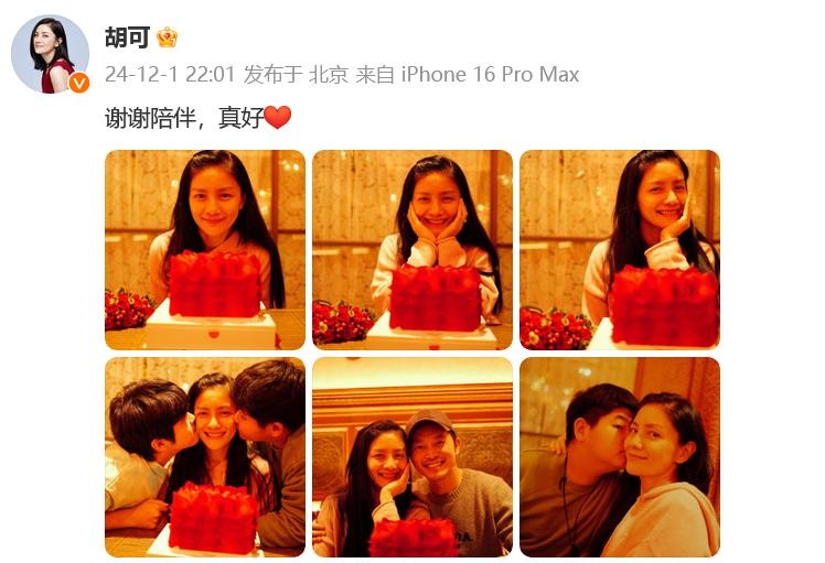 当天晚上,胡可本人晒出6张生日现场照回应:“谢谢陪伴,真好。”
