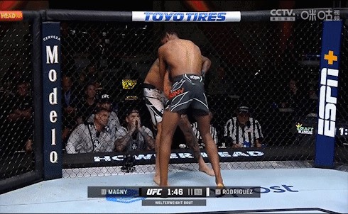 而争议战胜李景亮后,罗德里格兹杀入排名的同时,很快又迎来了比赛,他于11月5日与马格尼进行了一场比赛。在比赛中,马格尼于第三回合以达斯绞降服了罗德里格兹,成功拿到了比赛的胜利。李景亮也在赛后发布动态对裁判进行了调侃,他表示:马格尼打了一场伟大的战斗。我看到最后,以确保裁判没有举起罗德里格兹的手。