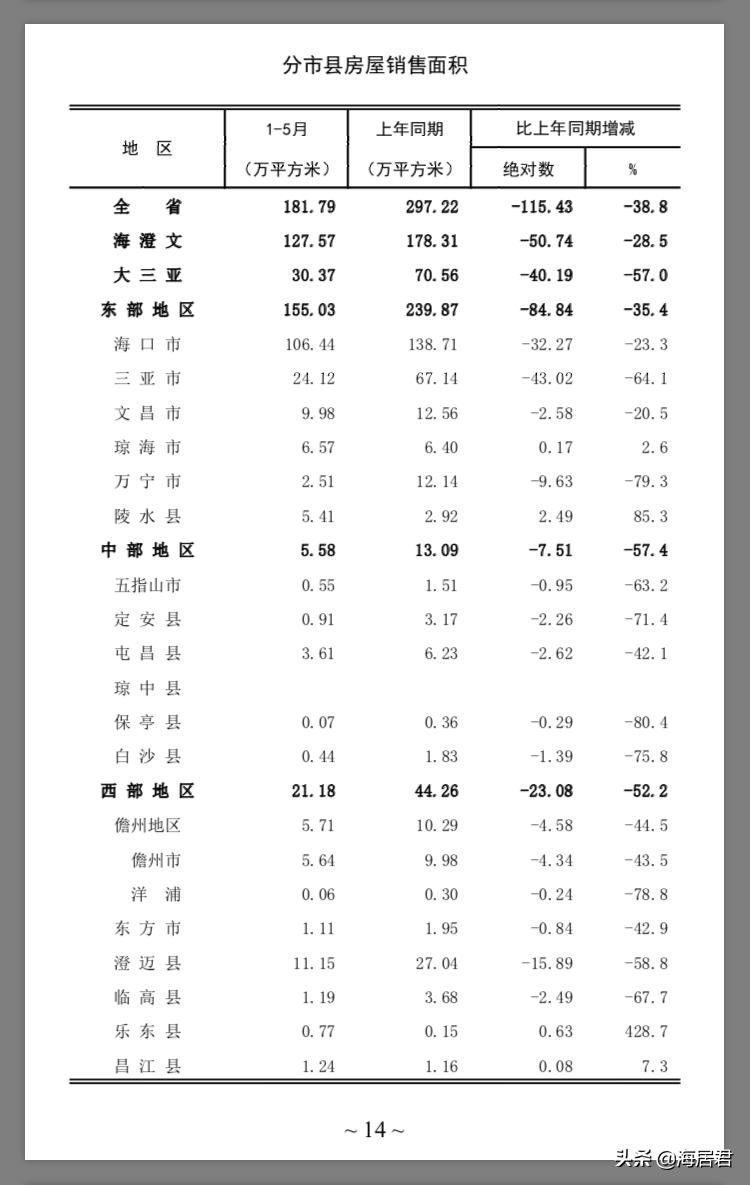有13个市县销售面积同比负增长,有4个城市同比跌幅超过70%,保亭县跌80.4%、万宁市跌79.3%、白沙县跌75.8%、定安县跌71.4%,三亚市跌幅收窄至64.1%。