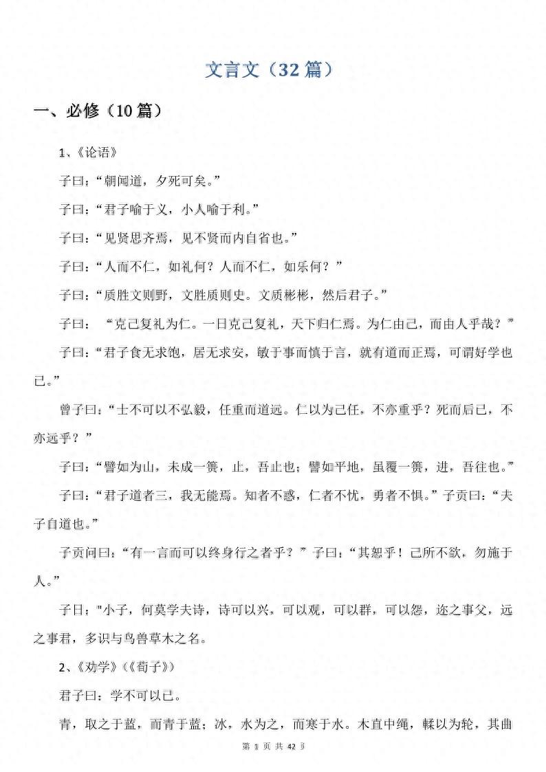 大家好,今天给大家分享的是高中语文,文言文高考72篇。