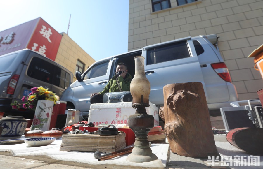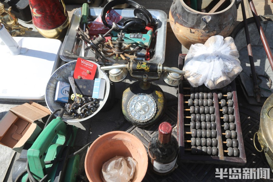 2月25日,青岛市北区昌乐路文化市场门前十分热闹,很多爱好老物件的市民来这里淘宝,路两边的摊位上有水缸、煤油灯、收音机、磁带等老式物件,除此之外,也有不少上世纪八十年代的流行物件。