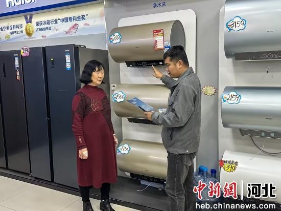 图为任丘市长丰镇一商场,工作人员为市民介绍以旧换新政策。 魏百旺 摄