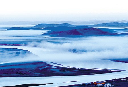 “黄河之水天上来”,源起高耸云天的昆仑,飞流直下,如从天降,到了甘川之交与白河汇合,忽然蜿蜒九曲、一步三回头,形成了中国最大的湿地泽国———若尔盖湿地。此处海拔高而昼夜温差大,云海奇观经常出现。