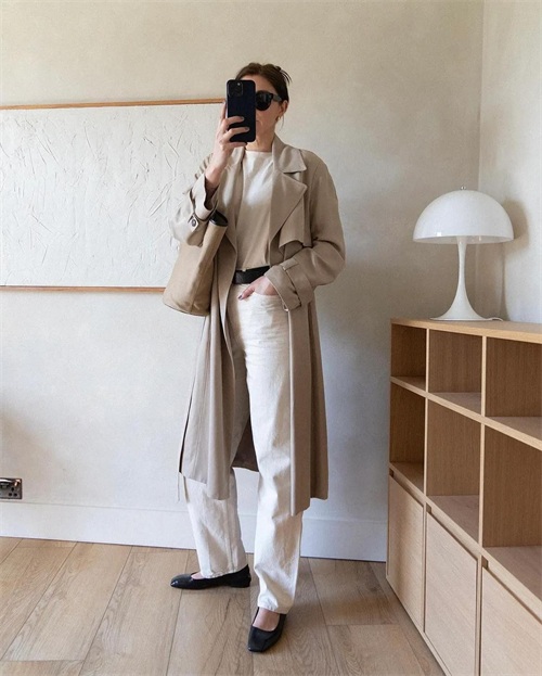 同样的配色原理也可以用在长风衣上,有种成熟精英感的魅力。