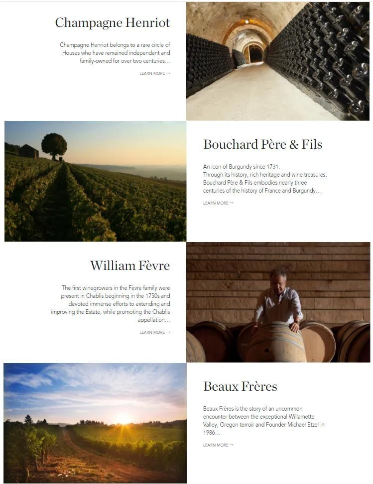 同时Artémis Domaines集团也包括原来Maisons & Domaines Henriot旗下的酒业资产:法国勃艮第的Bouchard Pere & Fils 、 法国勃艮第夏布利(Chablis)的William Fevre、法国香槟酒庄Maison Henriot、美国俄勒冈州的Beaux Freres酒庄。