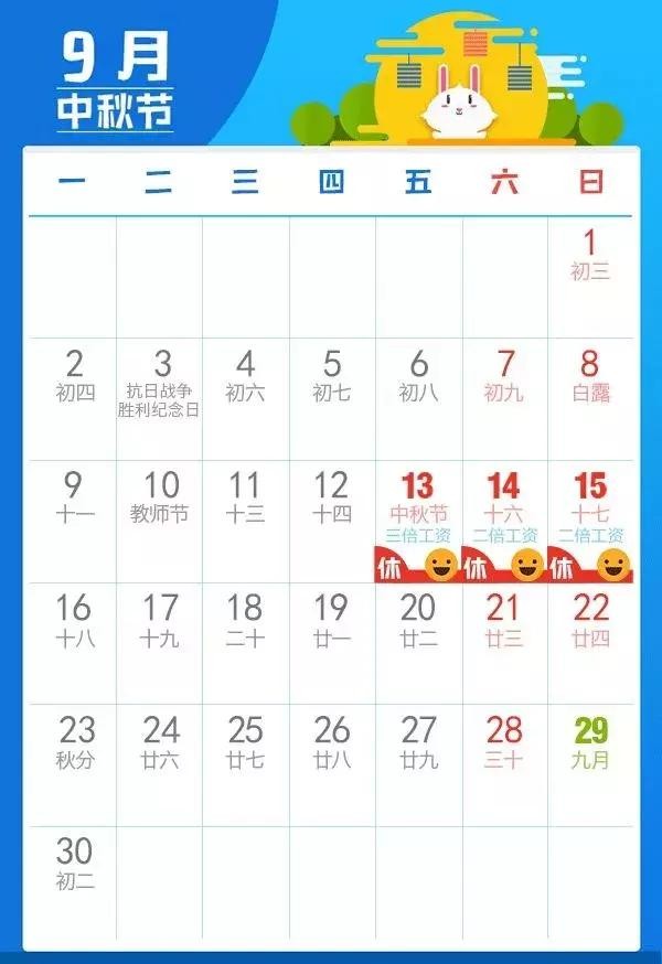 七、国庆节:10月1日至7日放假调休,共7天。9月29日(星期日)、10月12日(星期六)上班。