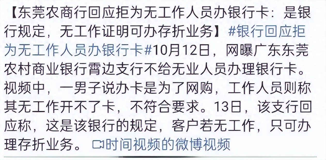 拒为无工作人员办银行卡?该地方银行回应引发网友热议