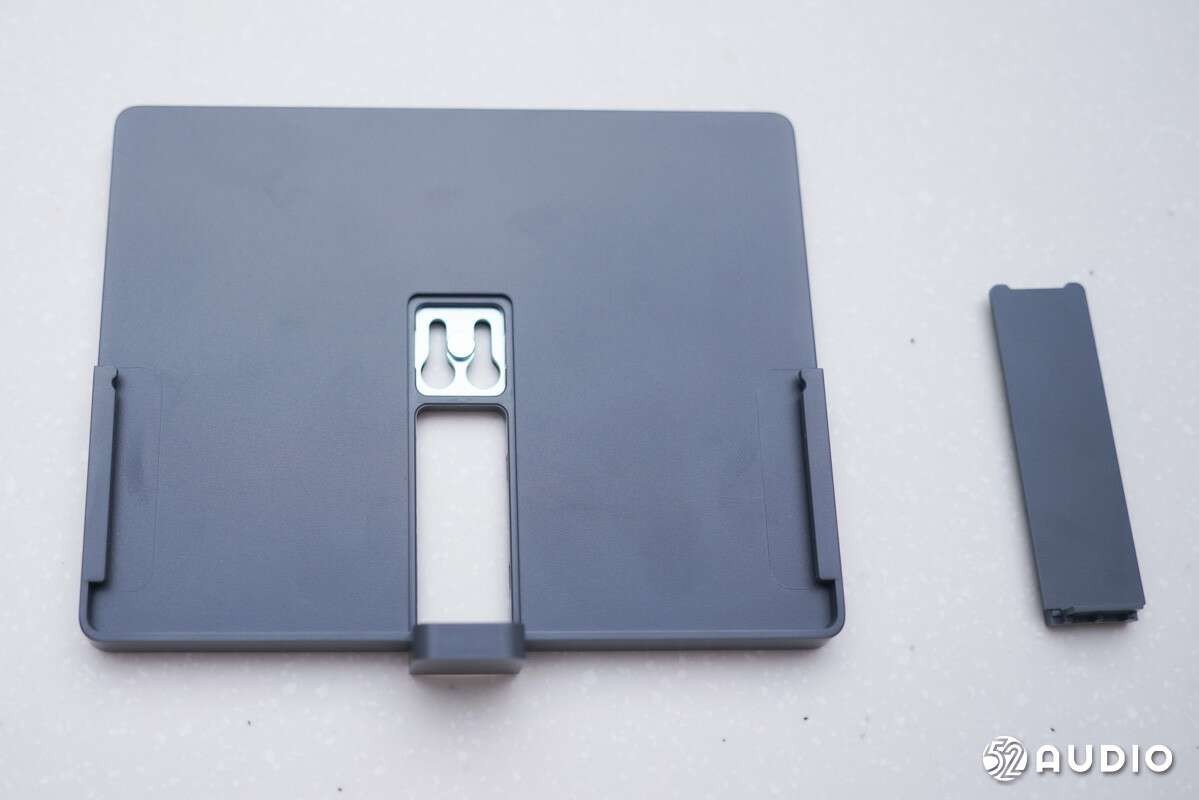 显示屏的背面有一个塑料的卡座,并配备有遮线板。