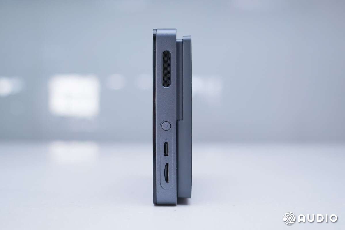 猫眼的触摸显示屏右侧一览,从上到下依次为,扬声器、电源键、Type-C电源接口、microSD卡槽。