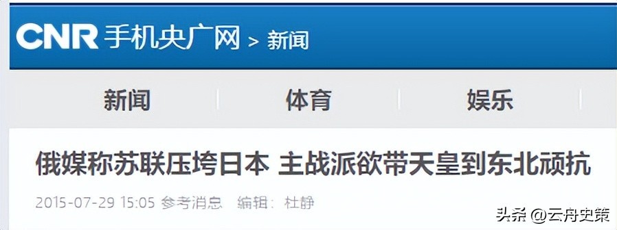 俄媒称苏联压垮日本 主战派欲带天皇到东北顽抗2015-07-29 参考消息