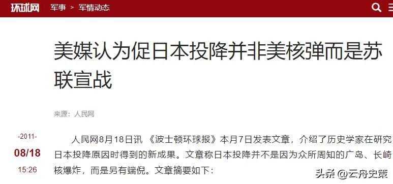 来源:人民网2011-08/18美媒认为促日本投降并非美核弹而是苏联宣战