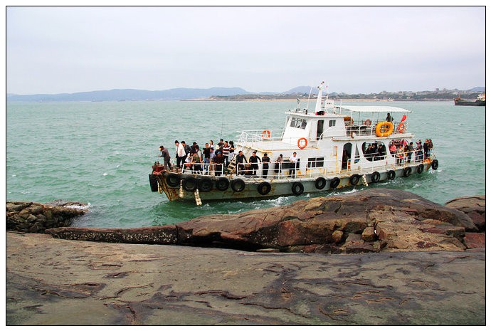 乘坐这种渡船,十几分钟就到了半洋石帆。