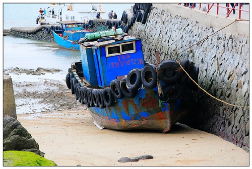 码头边的海蚀石块像极了酥软可口的面包,上面还抹着绿茶,难怪这里有“海蚀地貌博物馆之称”。