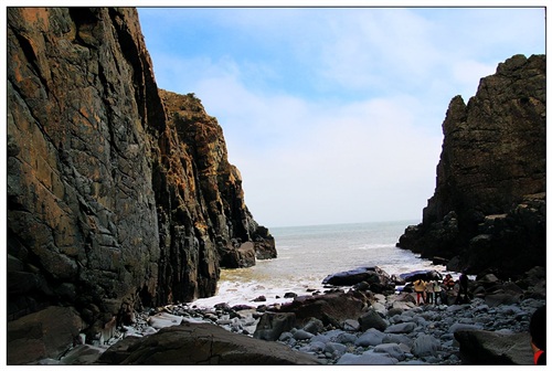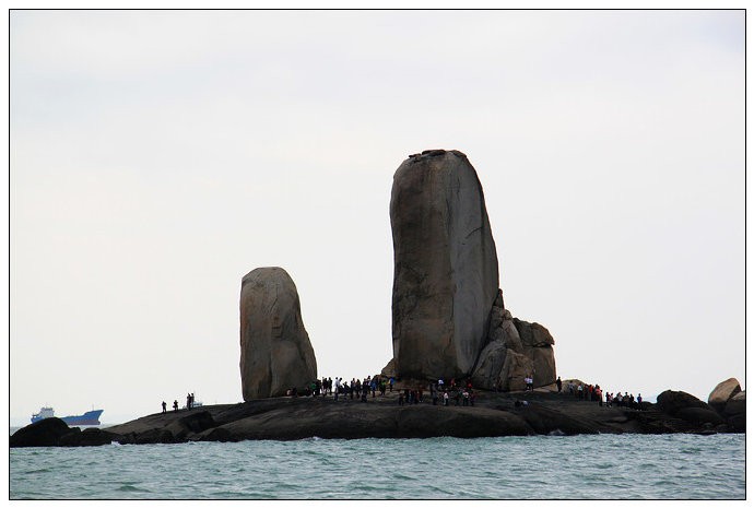 远远望去,“半洋石帆”像一艘乘风破浪行驶的船,两块天然海蚀石柱仿佛是船上两片鼓起的风帆,形象十分逼真。
