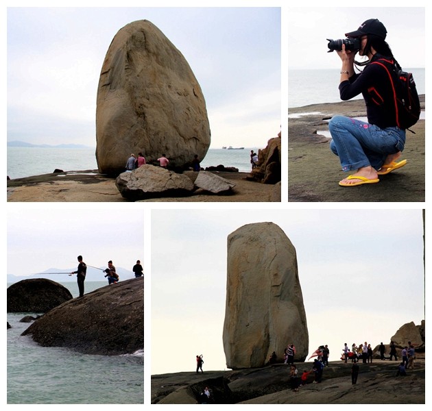 半洋石帆由于立在海中央,海风奇大,吹得无处躲藏,但海钓者依旧很勇敢地顶着海风垂钓。