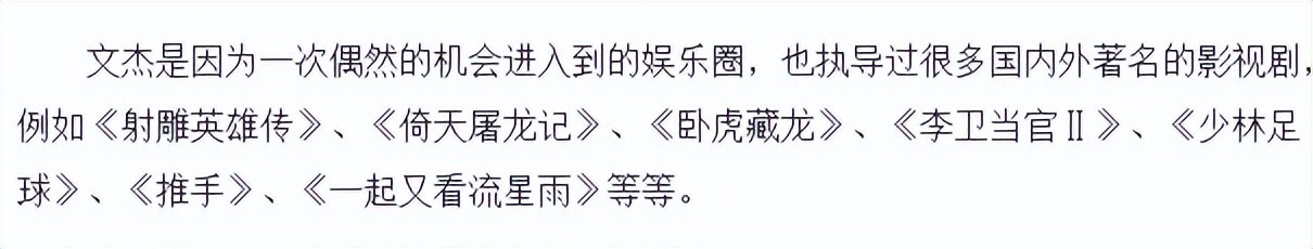 关于文杰,网上可查到的资料并不多,但就是这样一个籍籍无名的导演,简历却异常丰富。不仅获得过“国家一级运动员”的称号,还执导过多部大片。