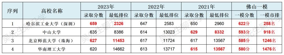 1-哈尔滨工业大学(深圳):2024年佛山一模物理类622分,全市258名。