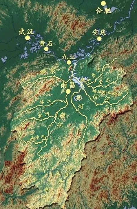 江西省水系及地形图