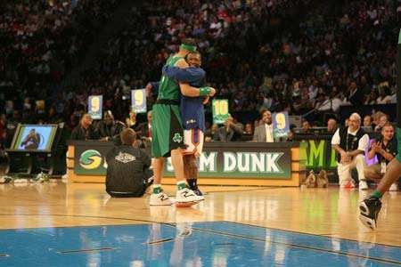 1米75的内特-罗宾逊与杰拉德-格林进入决赛圈,最终格林第一扣41分,第二扣50分,内特第一扣39分,第二扣41分,格林夺得了2007年扣篮大赛的冠军。是的,全场只有一个50分的扣篮,杰拉德-格林的一记接近罚球线起跳后飞越台阶,然后大风车扣篮征服了5位评委。