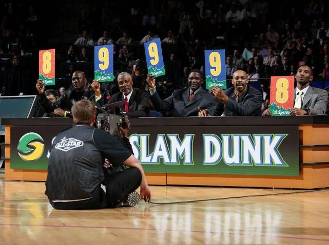 还记得2007年的扣篮大赛吗?那可能是唯一一届评委比球员实力还强的扣篮大赛!台下坐着的5位评委分别是2届扣篮王乔丹、罚球线扣篮的开创者“J博士”欧文、2届扣篮王“人类电影精华”威尔金斯、2000年扣篮王卡特,以及1997年扣篮王科比。