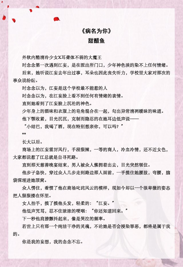 七七给小天使们推一波男主是偏执狂的小甜文,卑微且深情,占有欲爆棚。