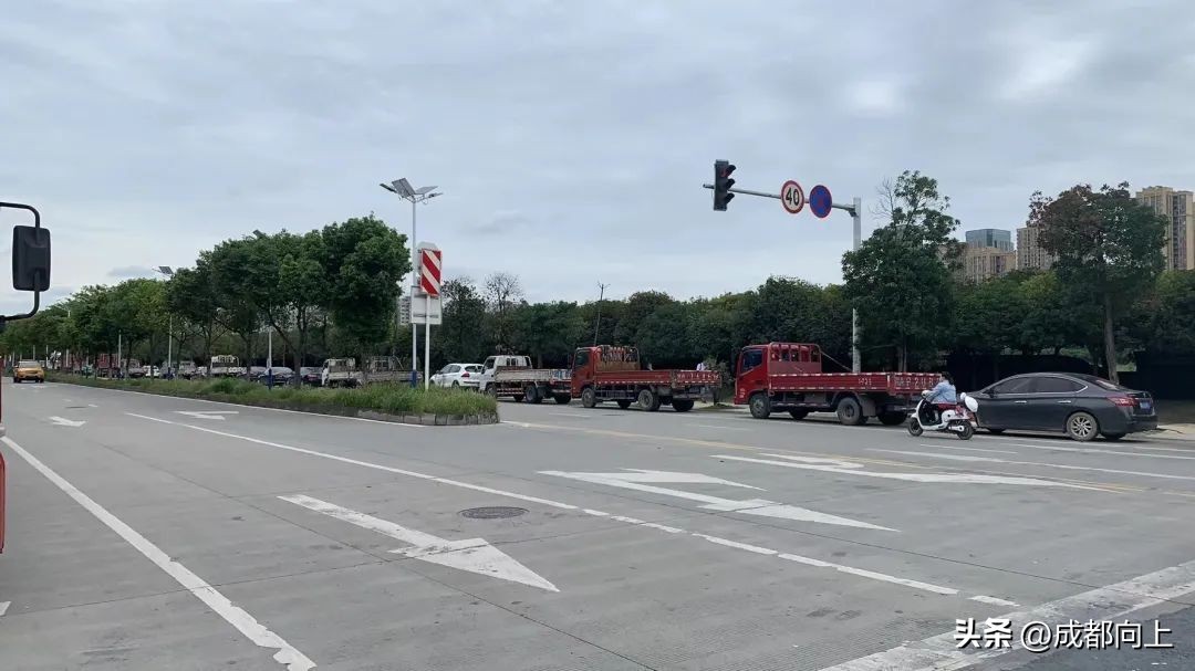 UP君去逛了一圈,没发现大货车的停车场,于是在川建南二路和汇丰路上停了很多货车,路过这里,就给人感觉很压抑,很不安全。你要知道,这可是在三环附近,弄得呜喧喧的。