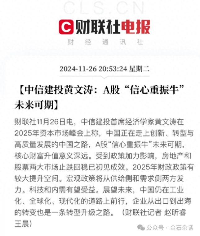 11月27日,26日,中信建投举办2025年资本市场投资峰会,公司总经理金剑华履新后首次公开亮相。而关于A股到底什么牛,似乎建投首席经济学家和建投策略首席观点并不一致。一个认为是信心提振牛,一个认为是信心重估牛。